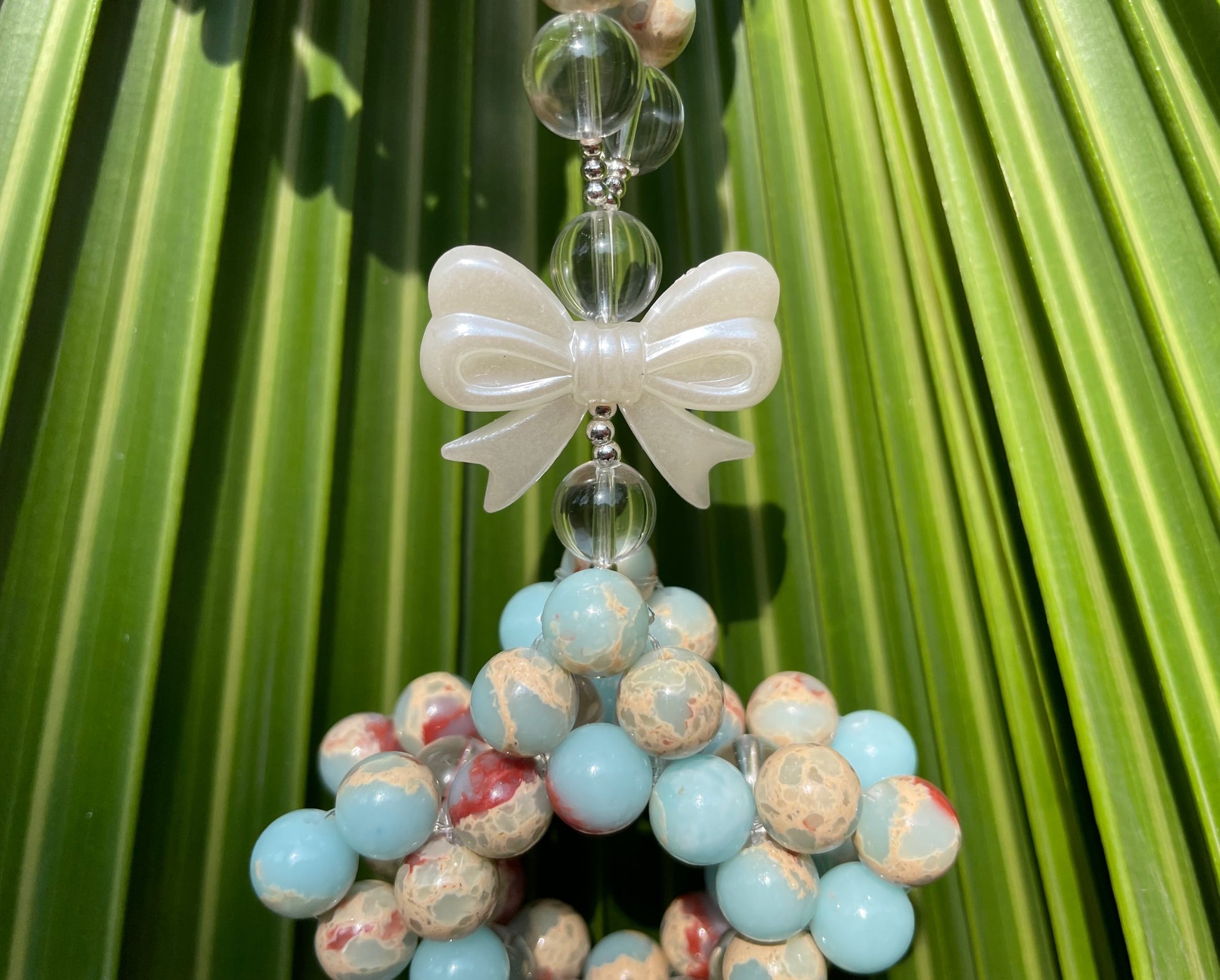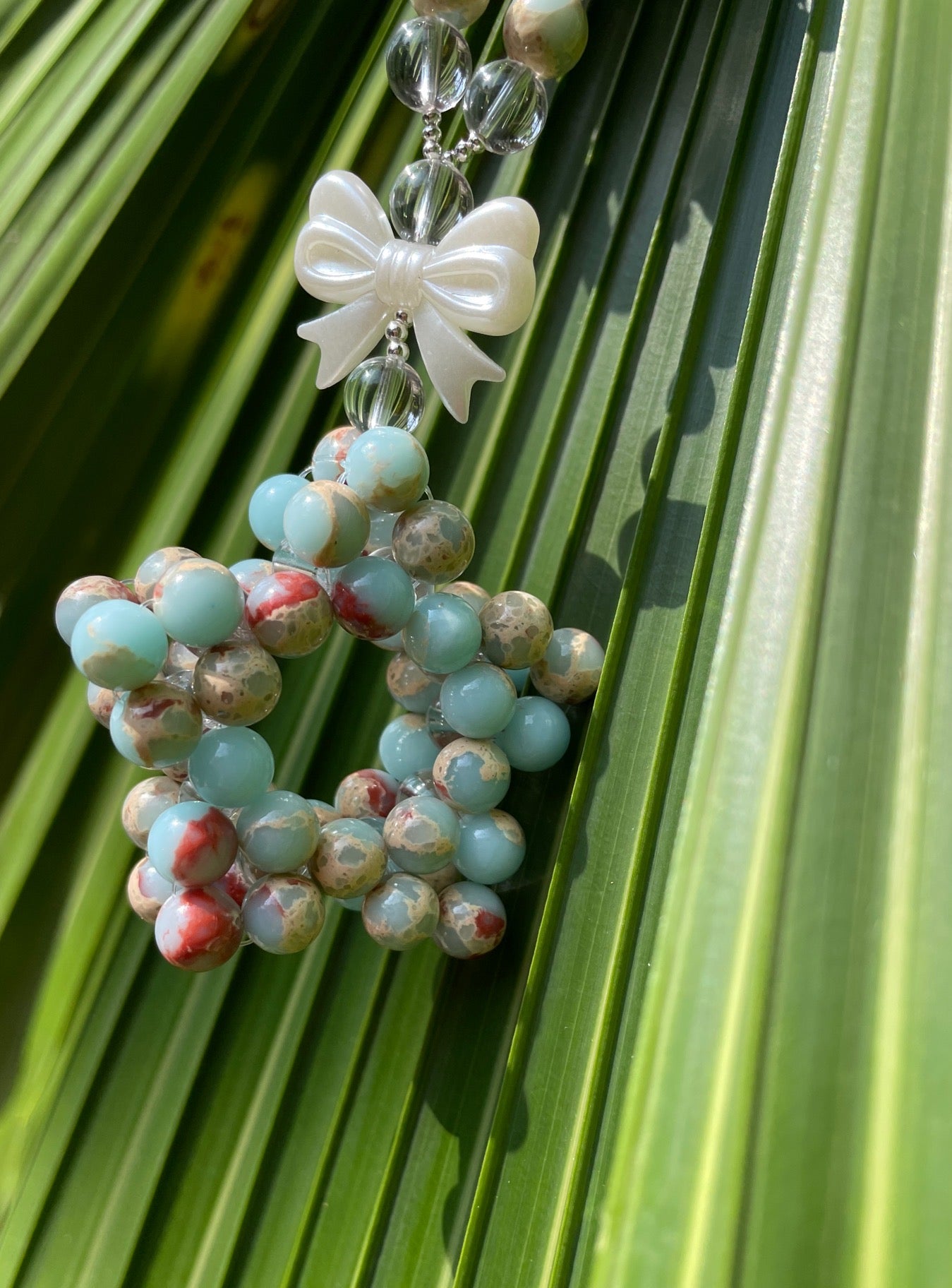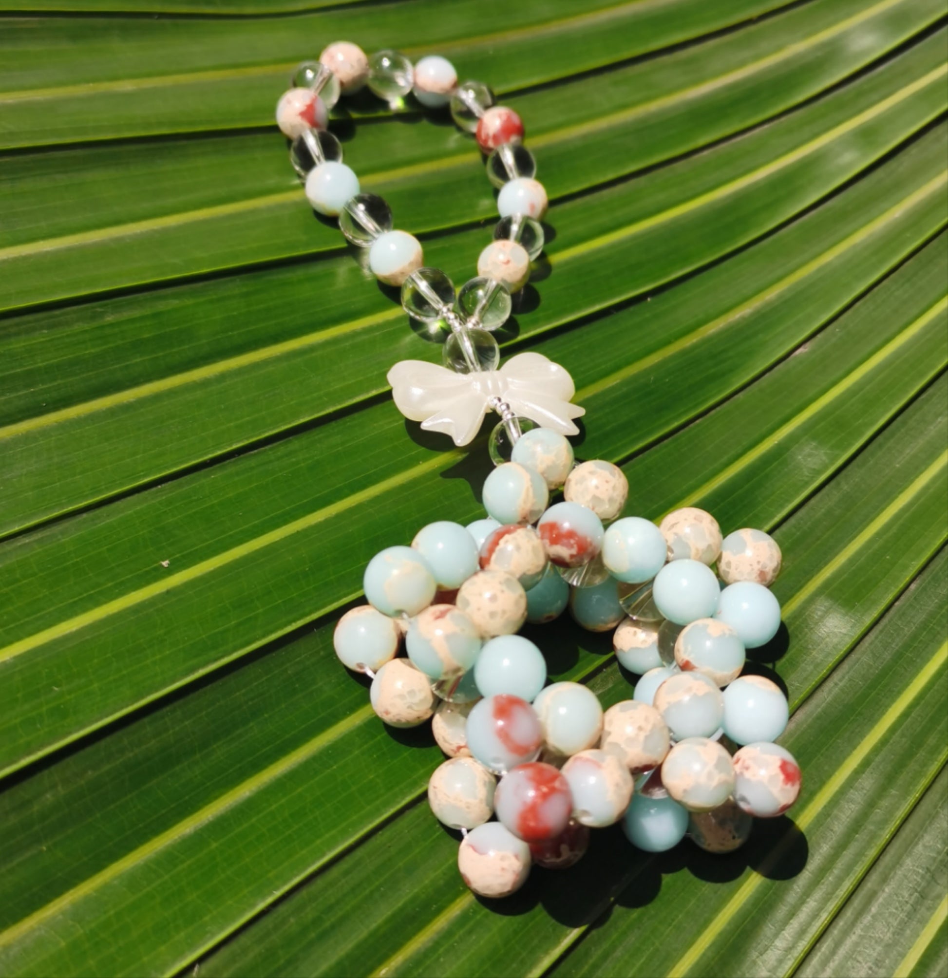 The product is totally handmade with Shoushan Agate crystal beads which are 8mm.