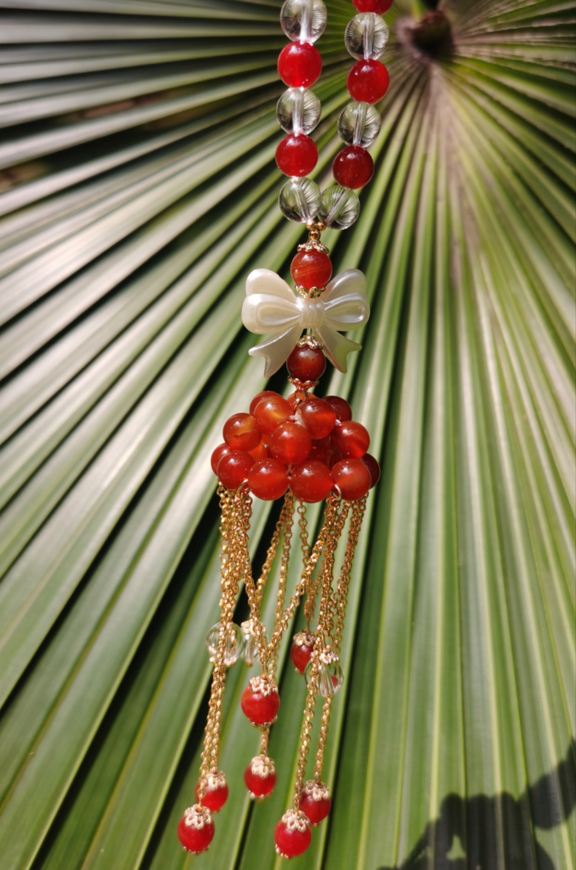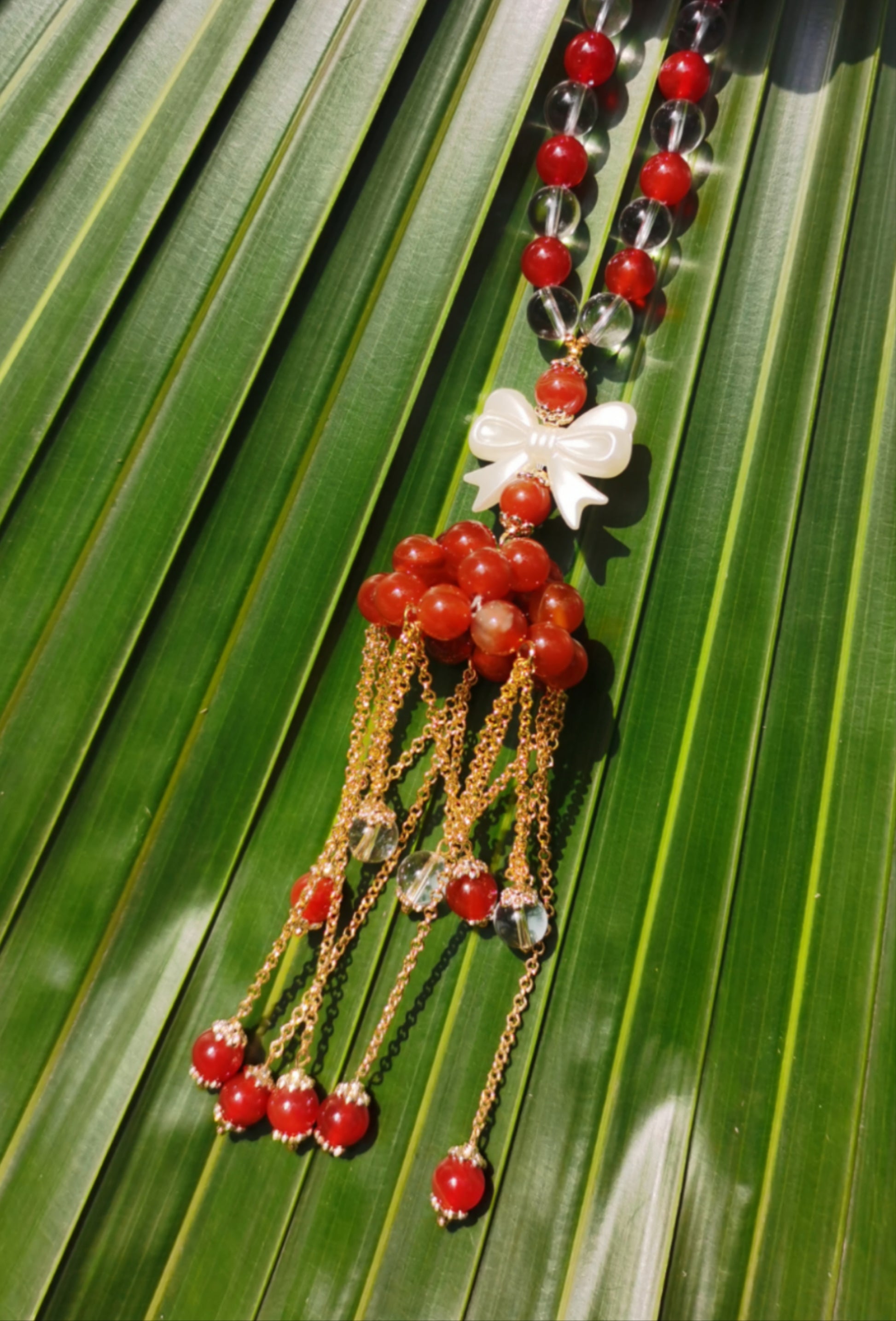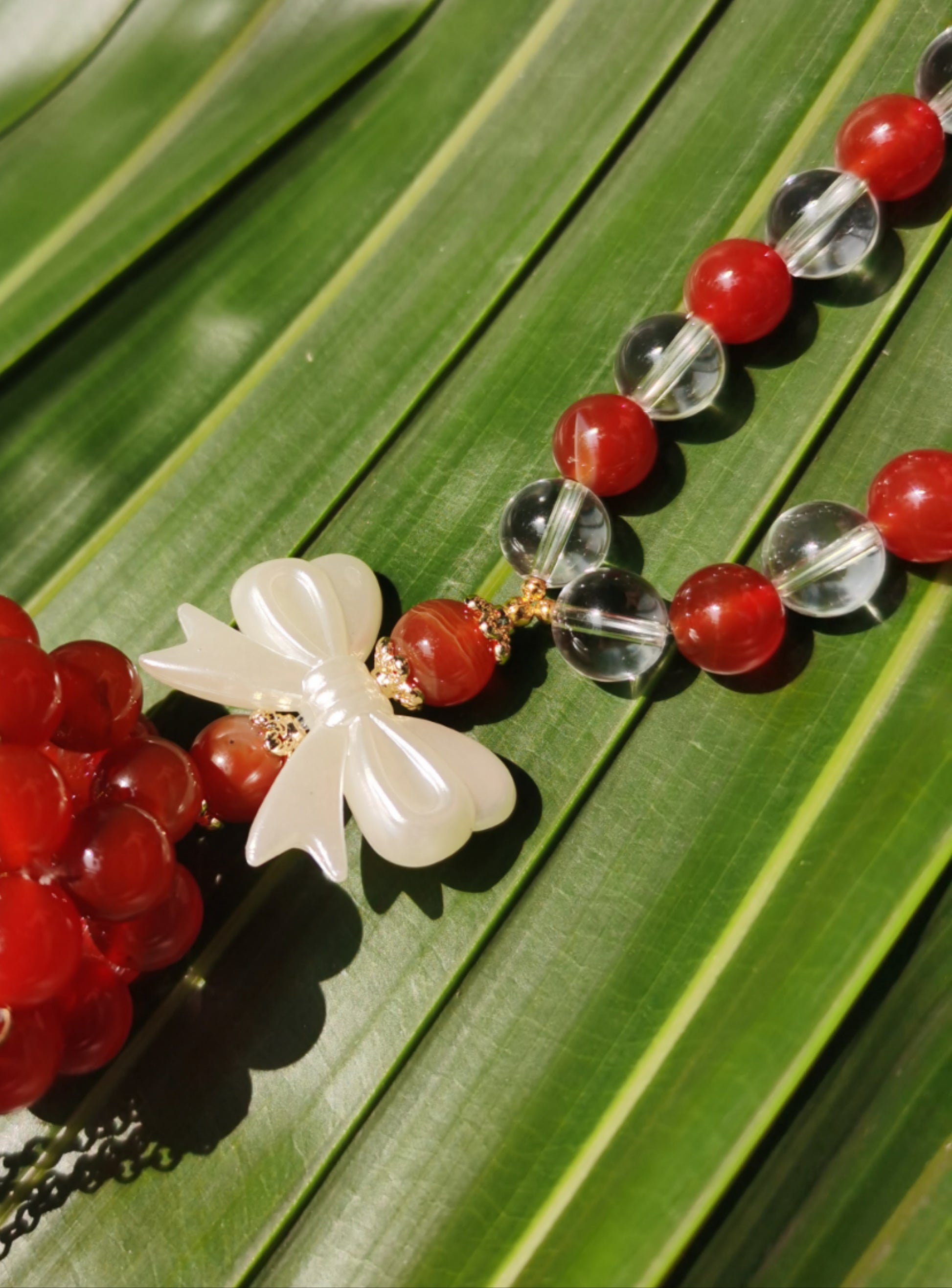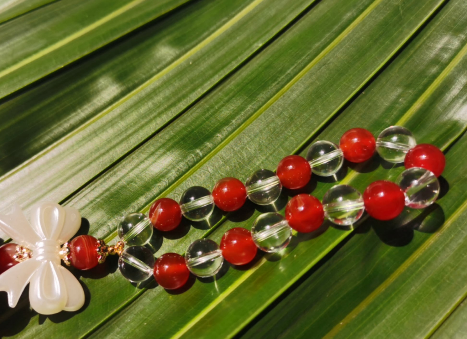 The product is totally handmade with chalcedony crystal beads which are 8mm.