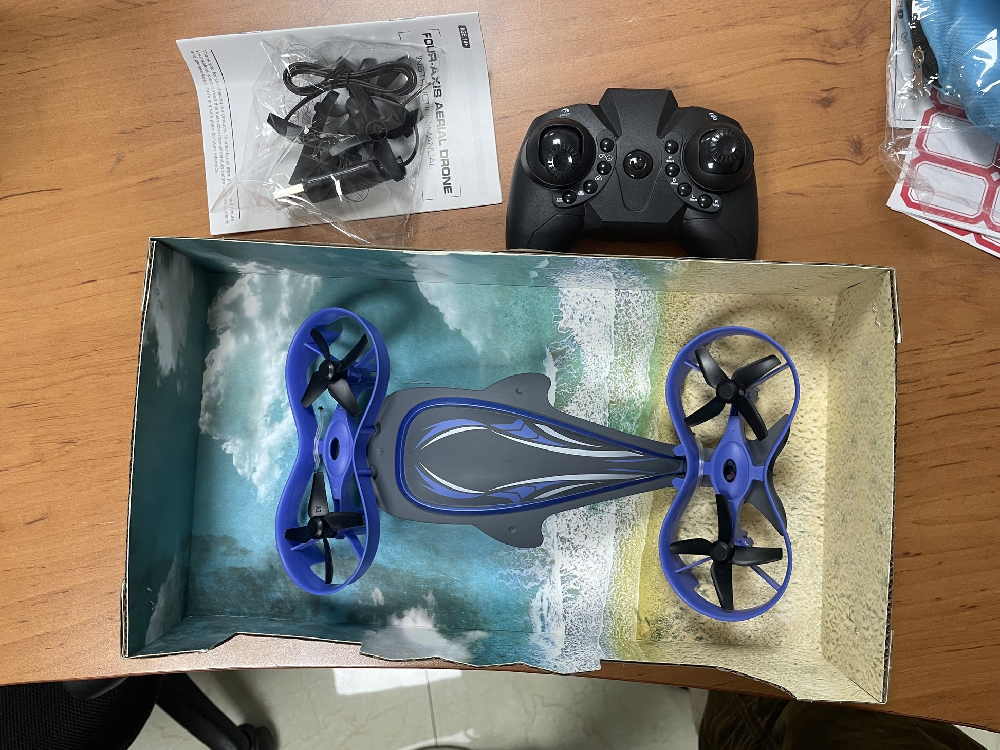 This product is a remote-controlled aircraft that can be controlled with a remote control to move forward, backward, up, down, turn left and right, and fly left and right. Equipped with fast and slow speed switching function, 360 ° special effects surround. This product can be used in three environments: air, land, and water, and can be freely switched between three modes to increase the fun of handling.
